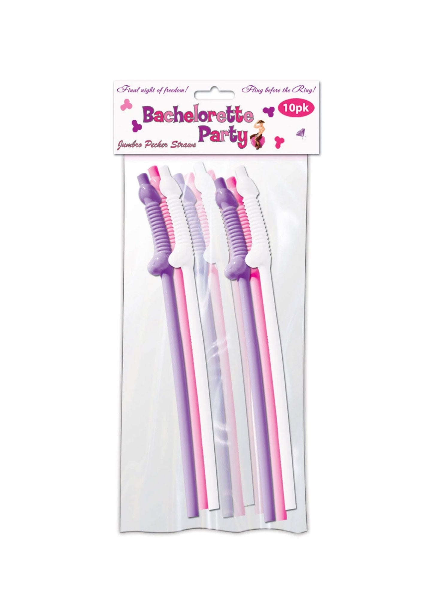 10 Flexible, Bendy Straws. 12 Inch Pecker Party Straws in 3 fun colors of pink, purple and white.