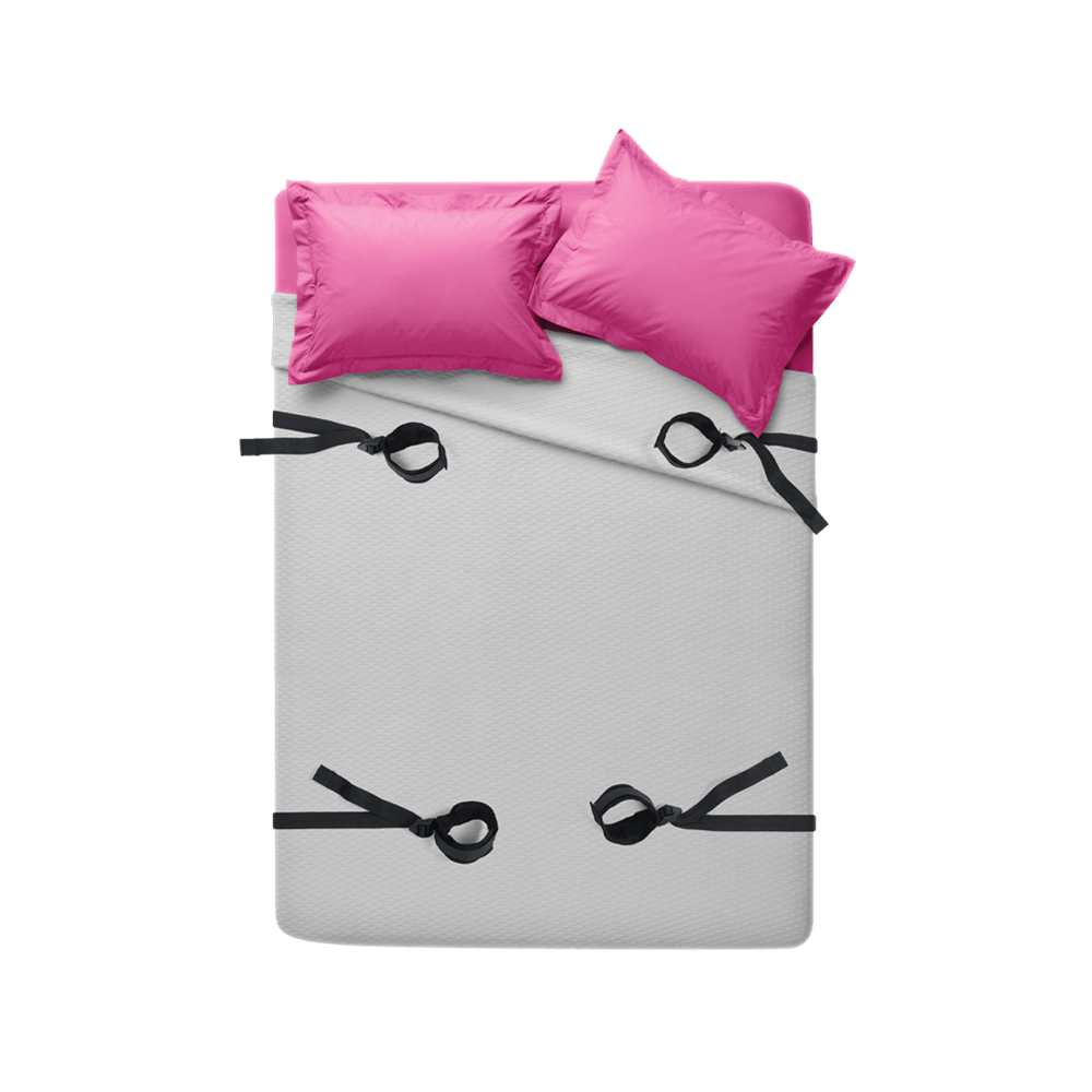 The original (yes, we invented it) Under The Bed Restraint System is easy to set up, in fact, sets up in minutes. 4 adjustable cuffs (fits 4 inch to 12 inch wrists), four restraint straps secured to one connector strap that fits securely under your mattress. Restrains your partners' arms and legs from the sides or bottom of the bed. The restraint strap quickly fits beneath any mattress with no hooks and adjusts to the size you desire. Easy set-up on any mattress. Portable and great for a surprise getaway.